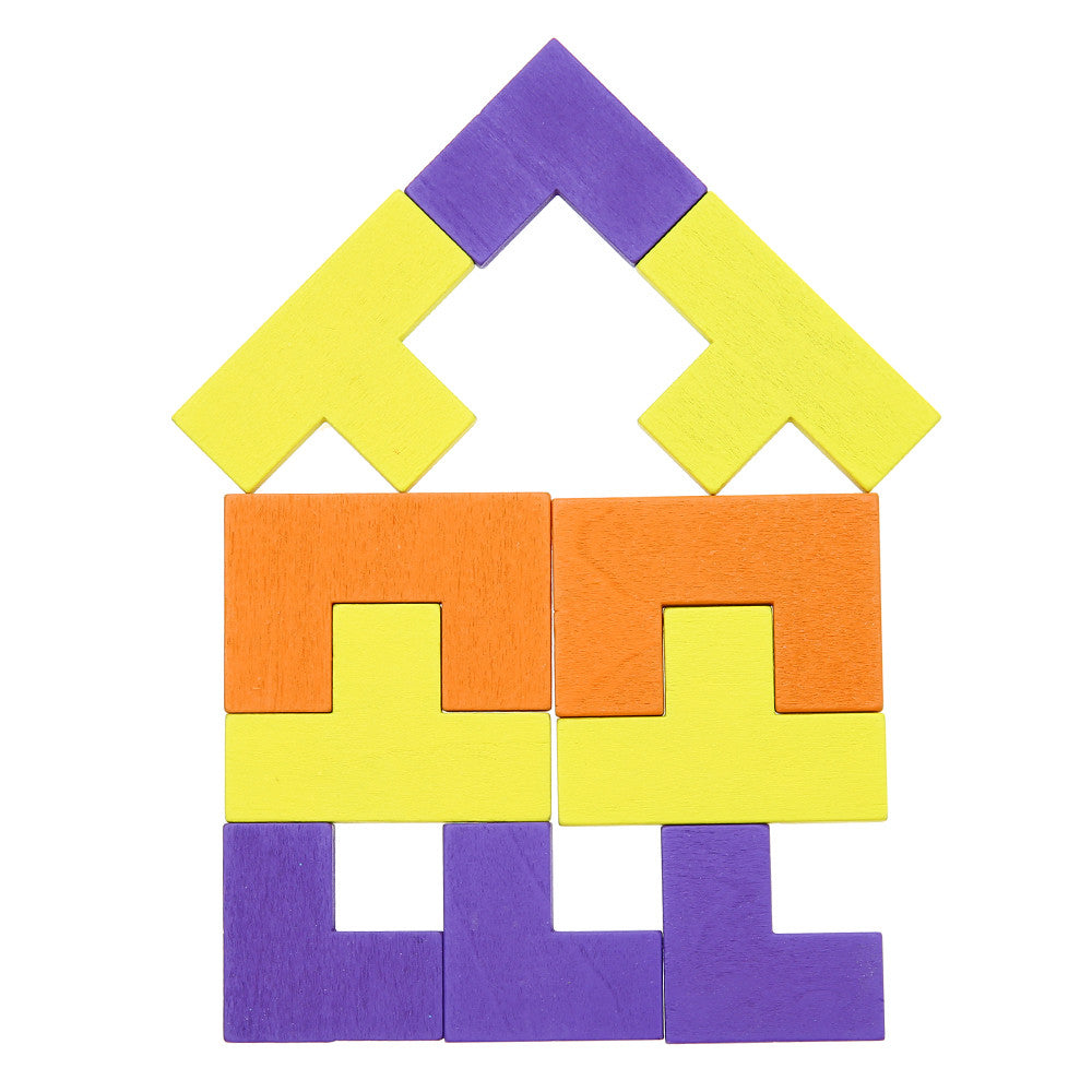 Wooden Tetris puzzle are featured in bright color, easy-grasp. Encourage hand-eye coordination, fine motor skills and visual perception skills.